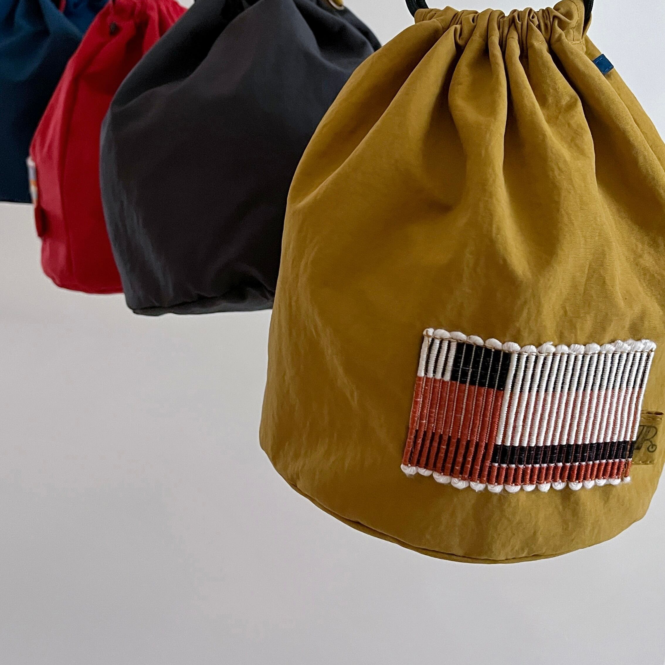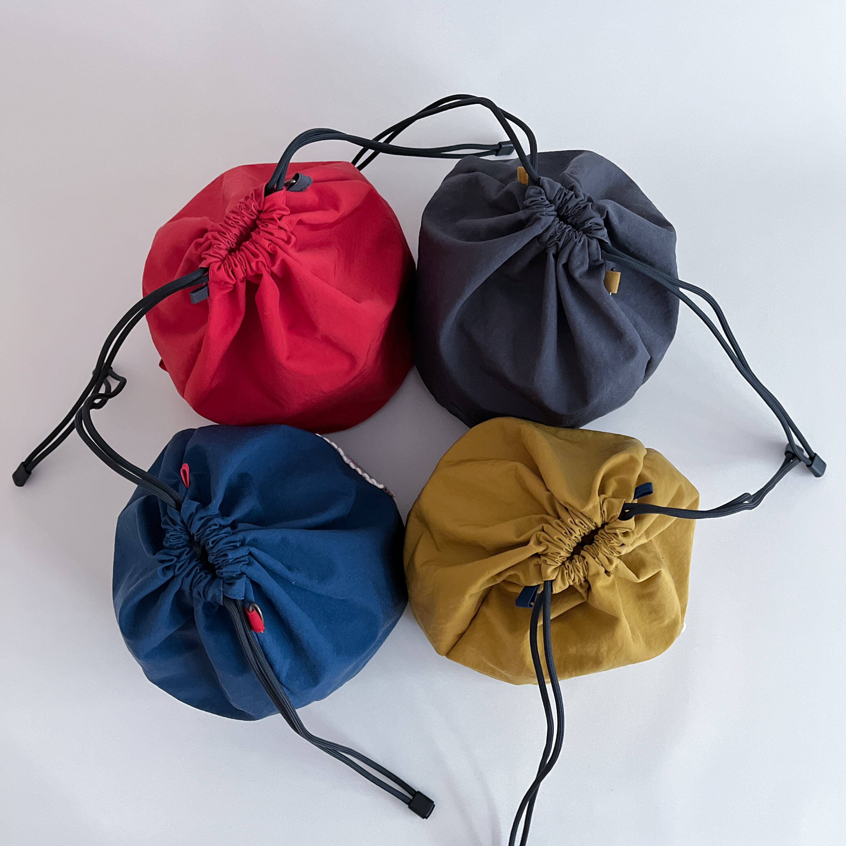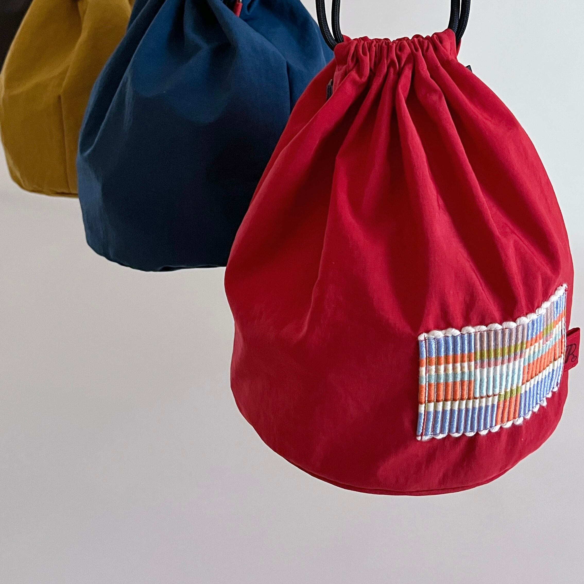 色鮮やかな巾着は まんまるな底の為、