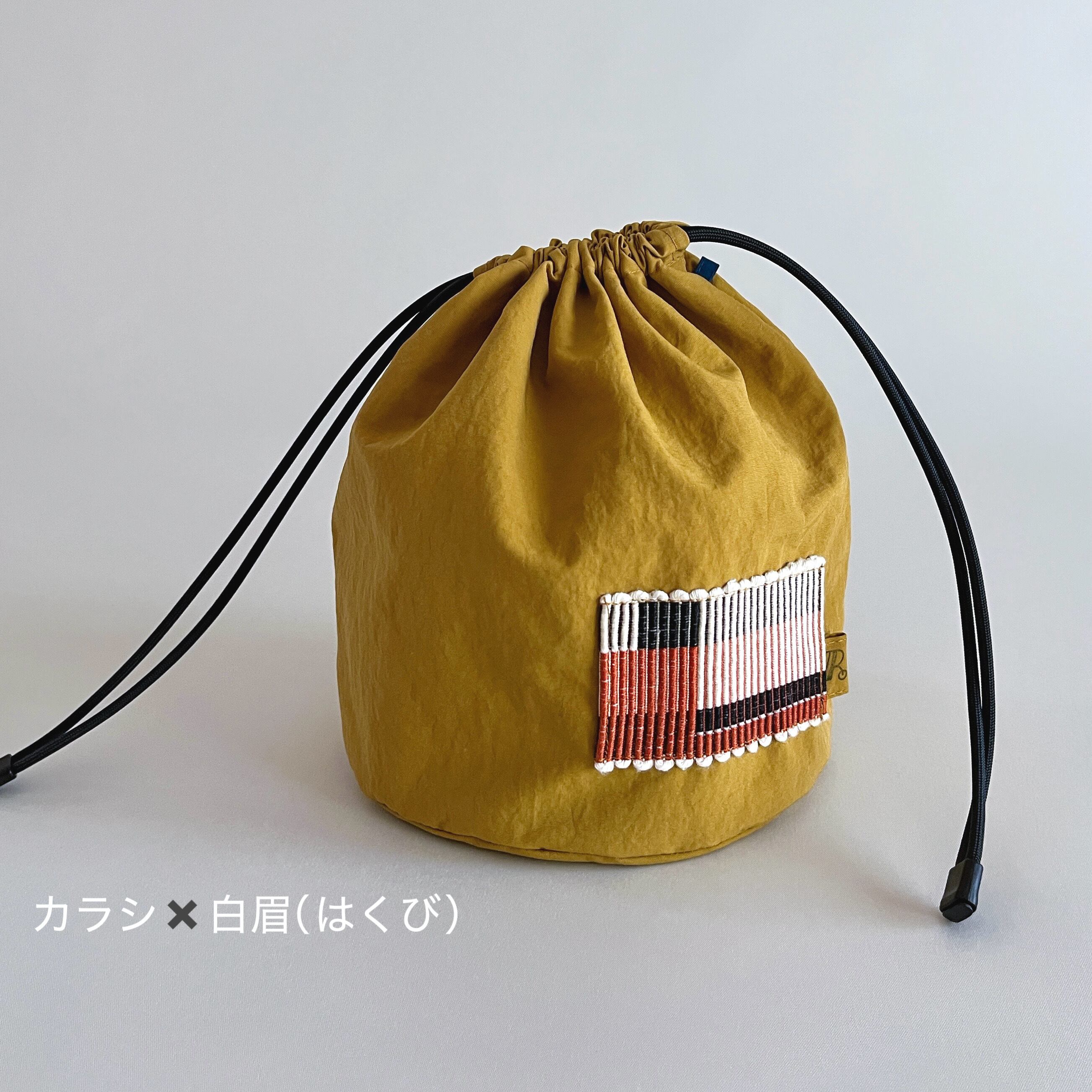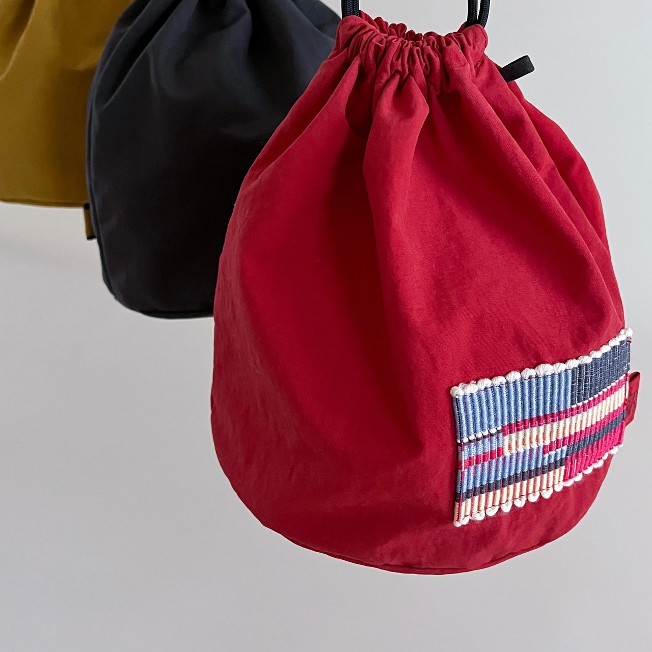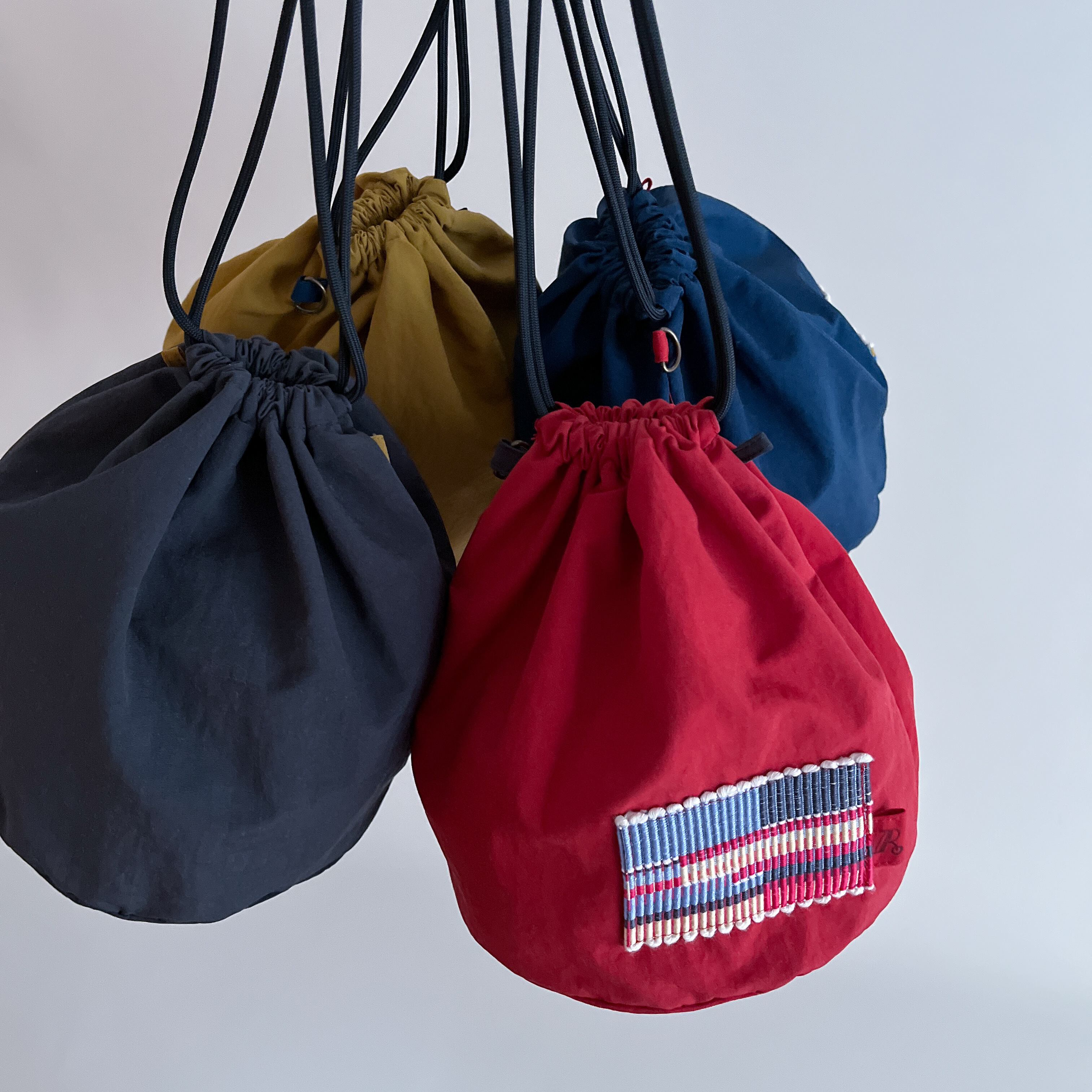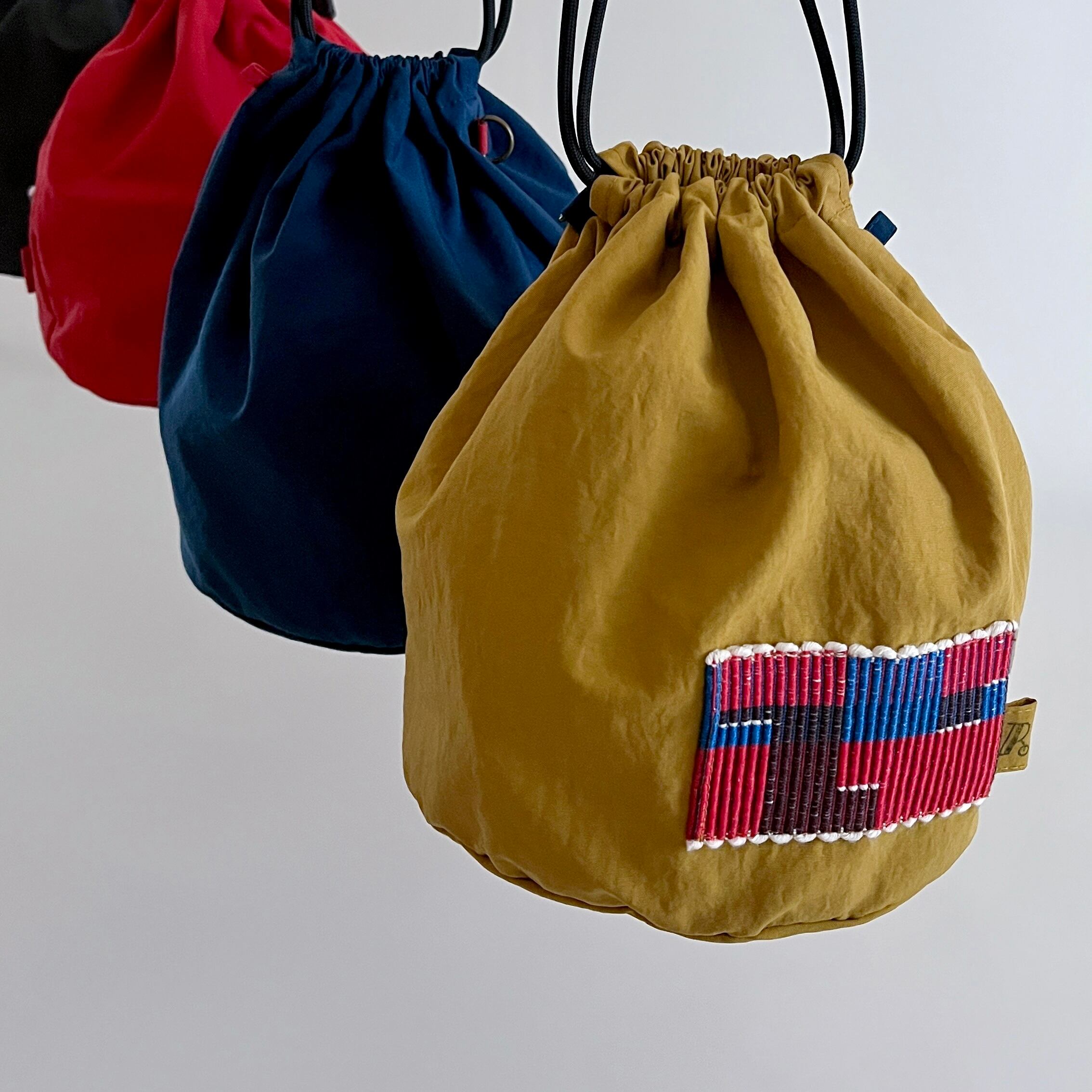 色鮮やかな巾着は まんまるな底の為、