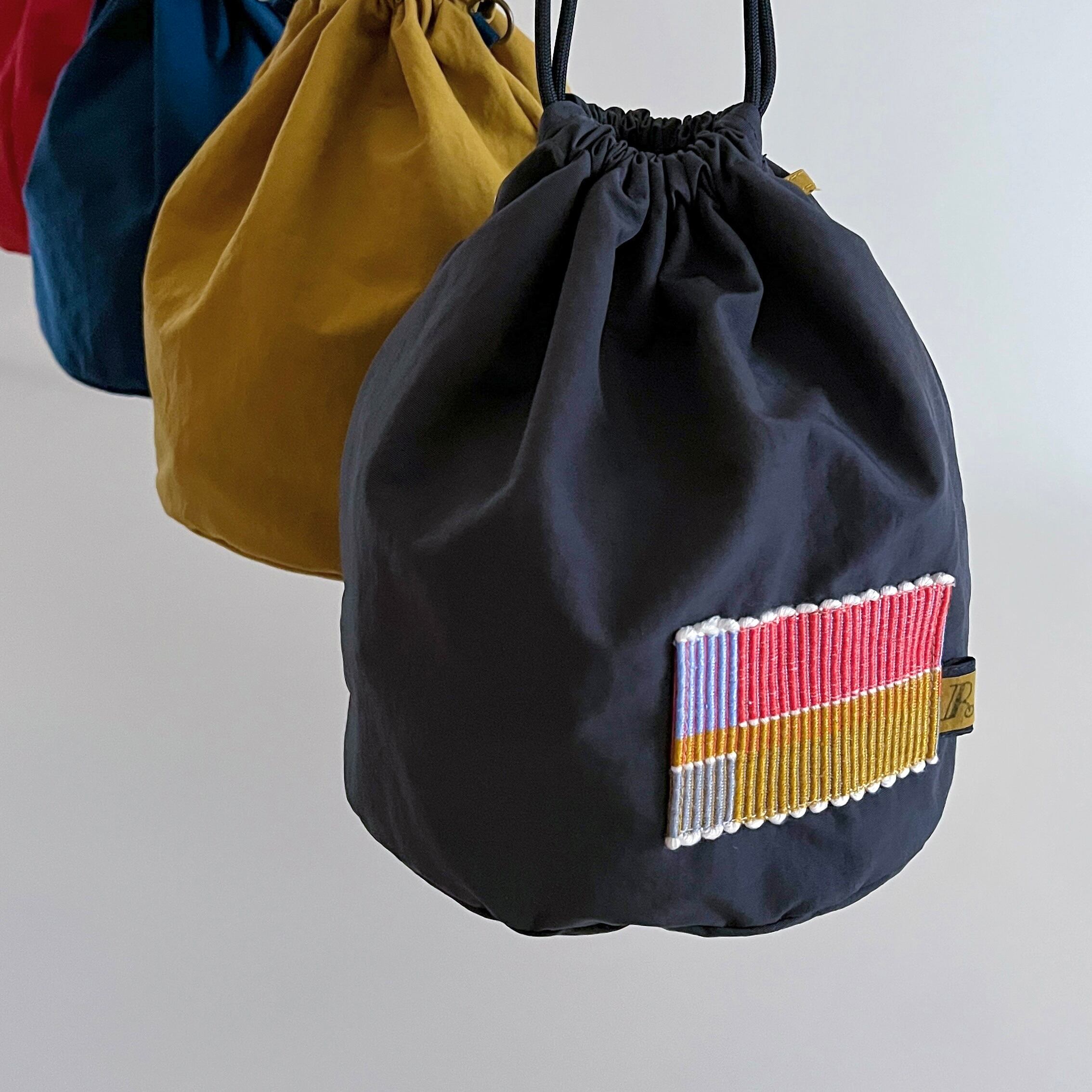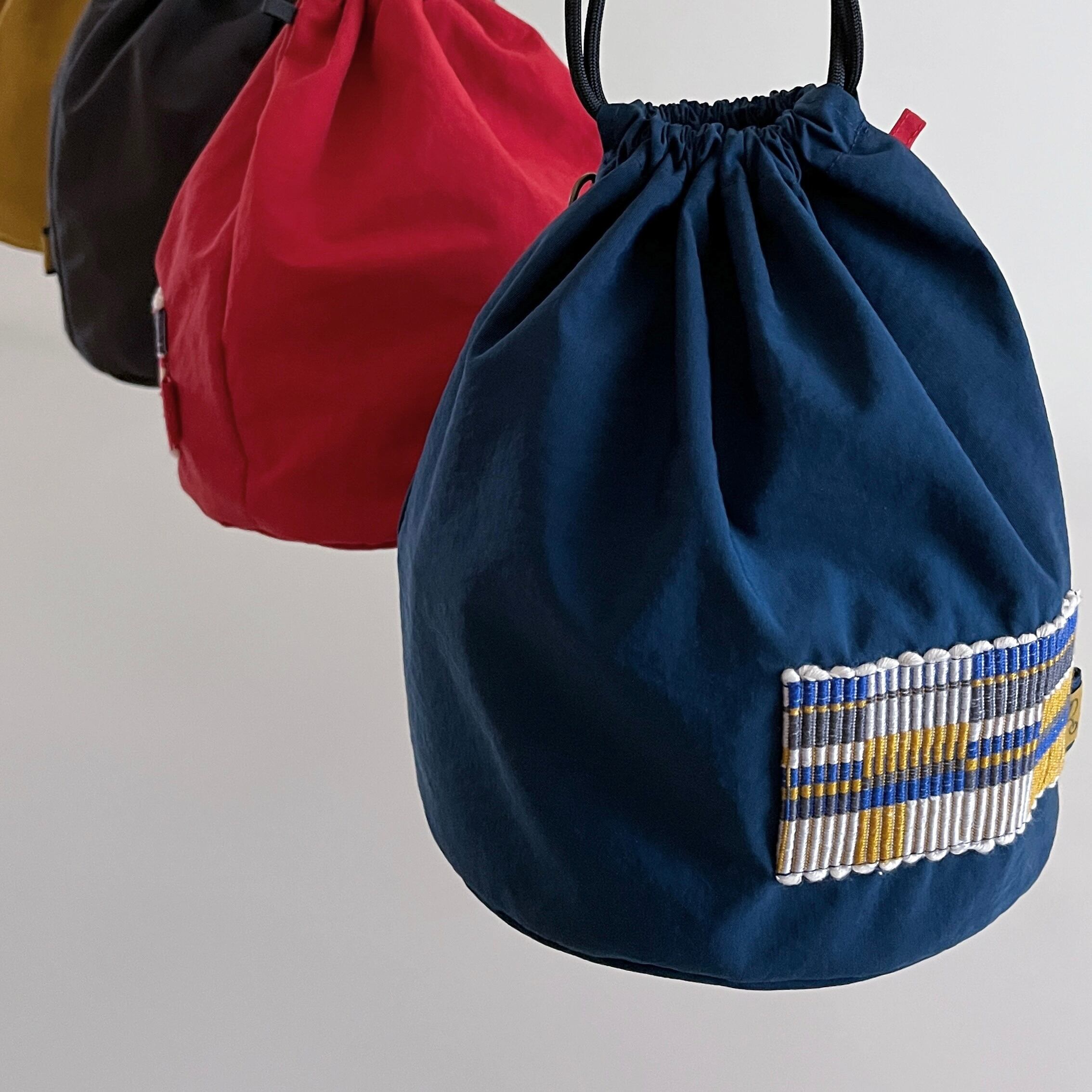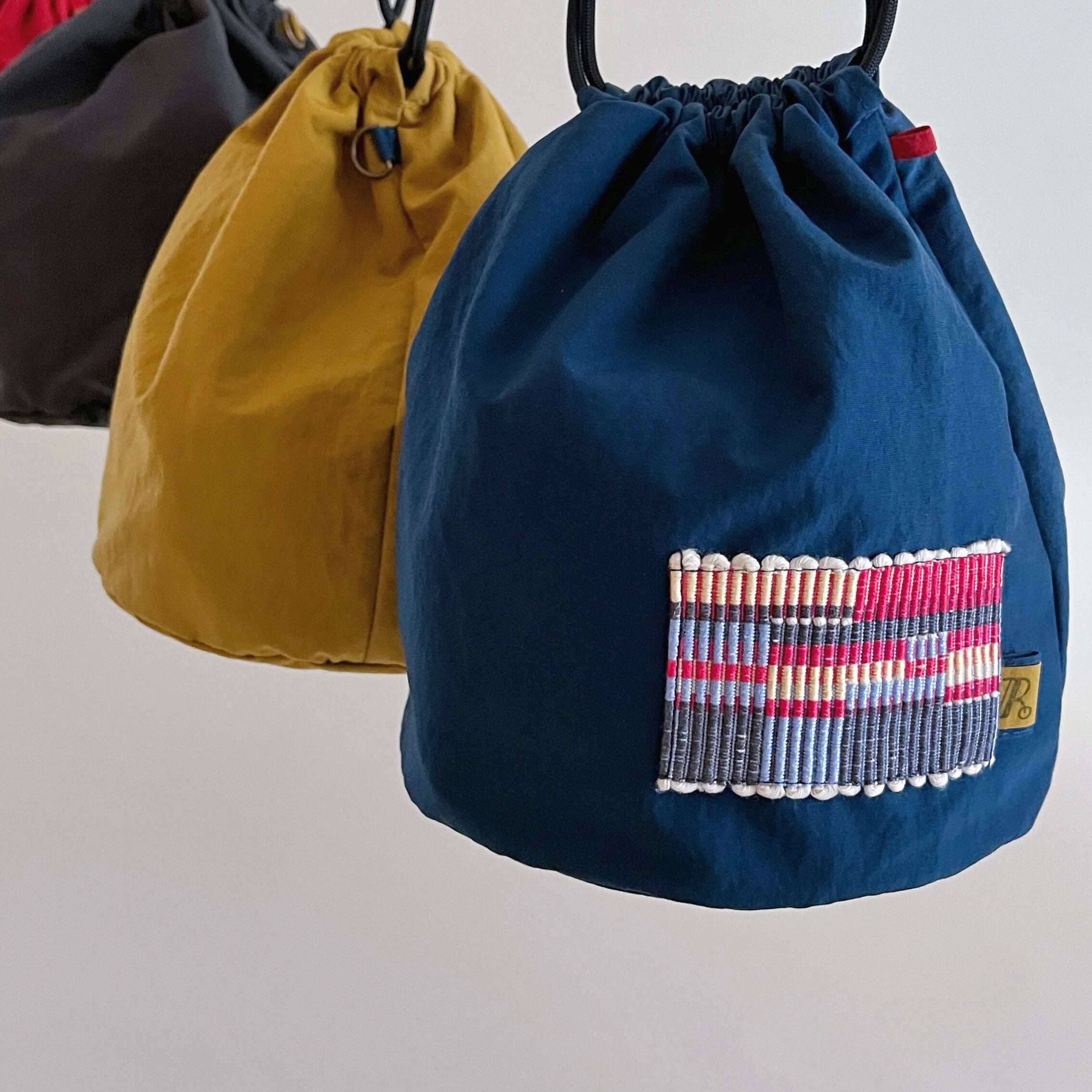色鮮やかな巾着は まんまるな底の為、