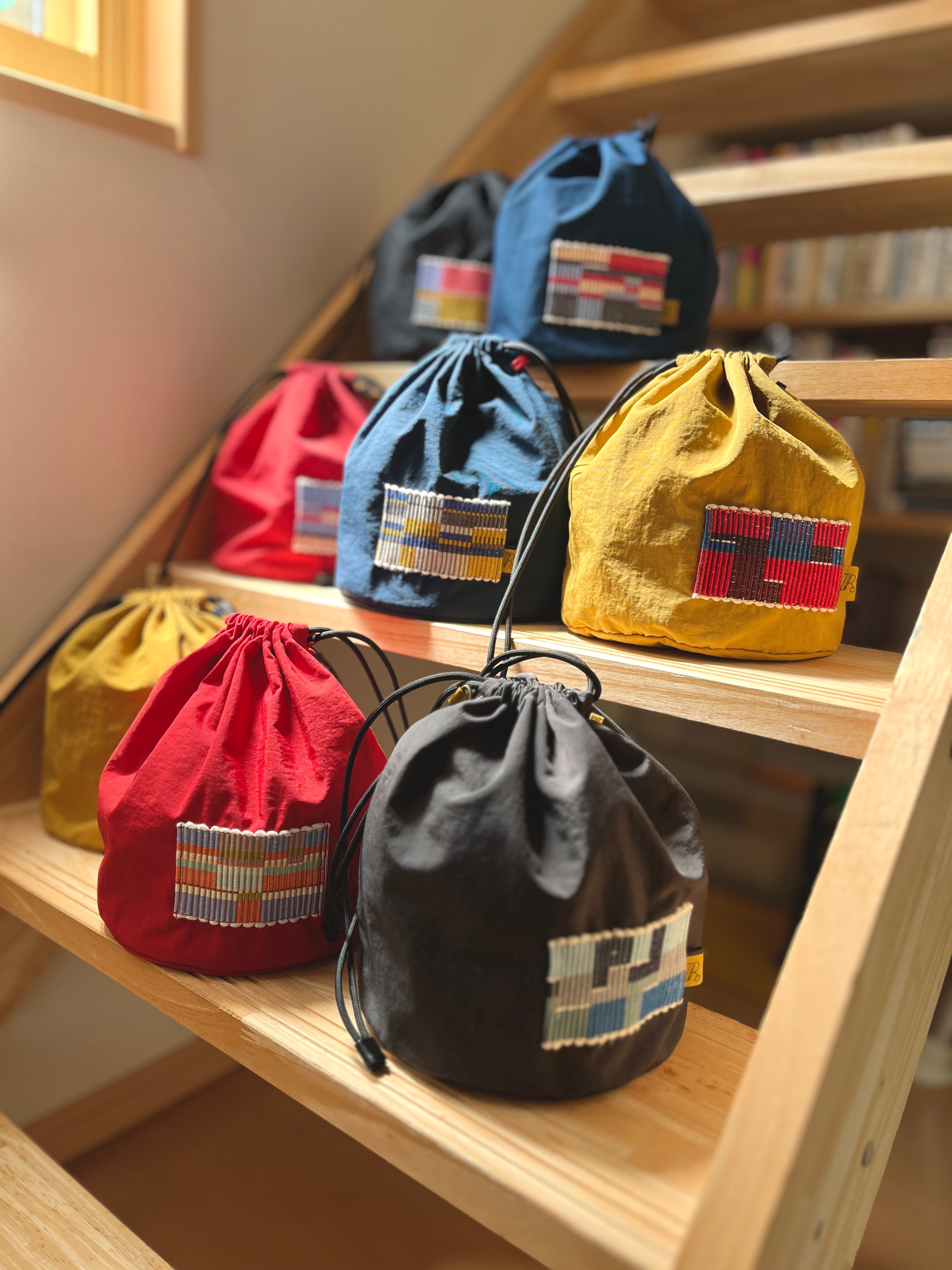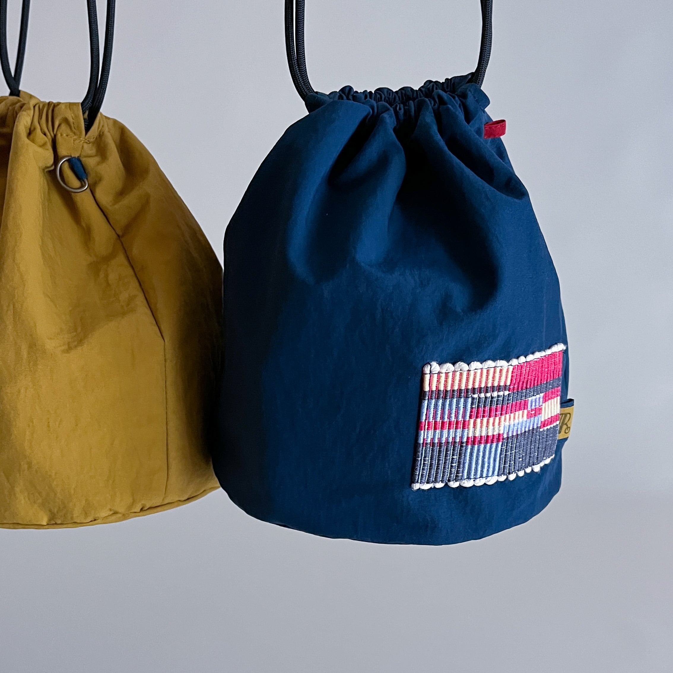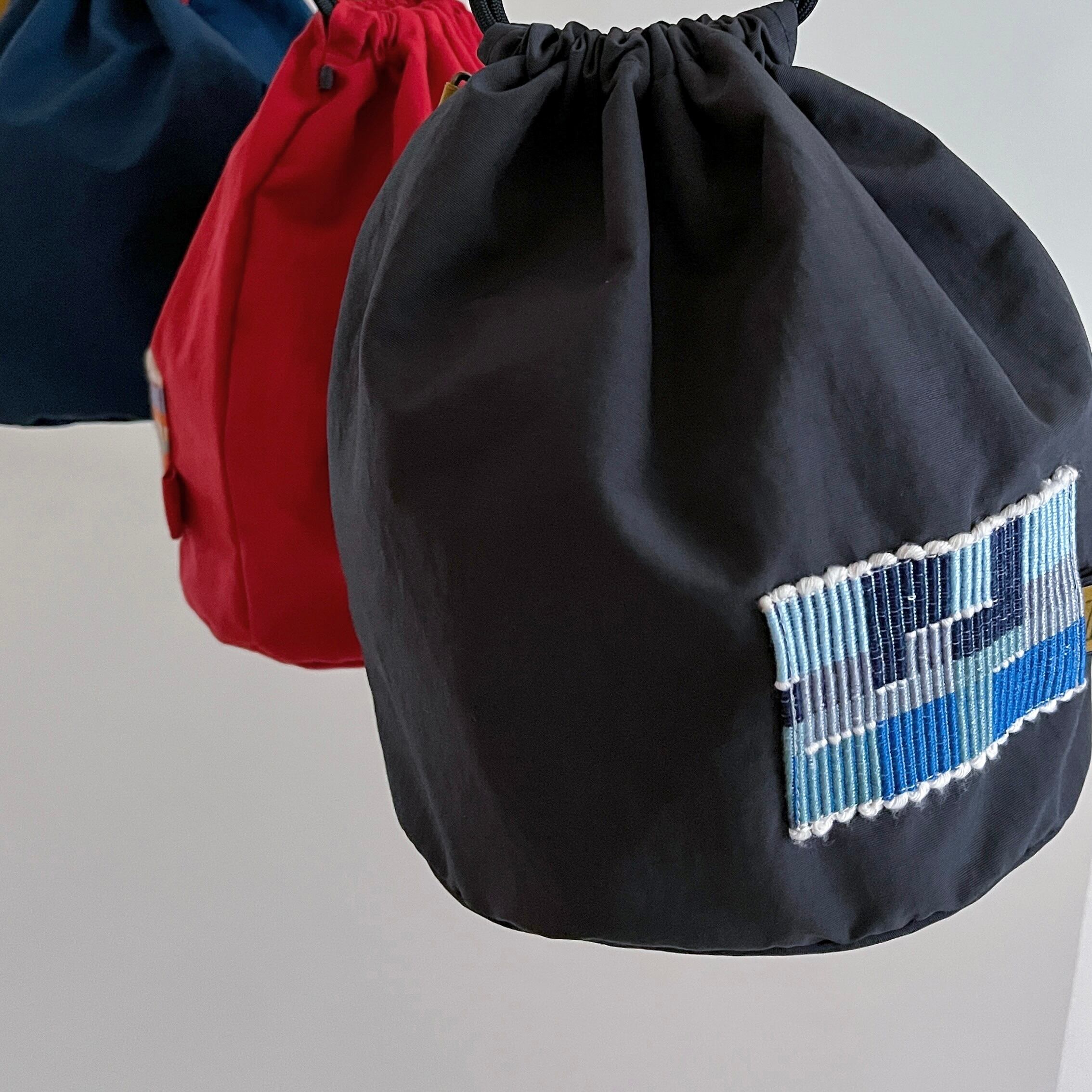 色鮮やかな巾着は まんまるな底の為、