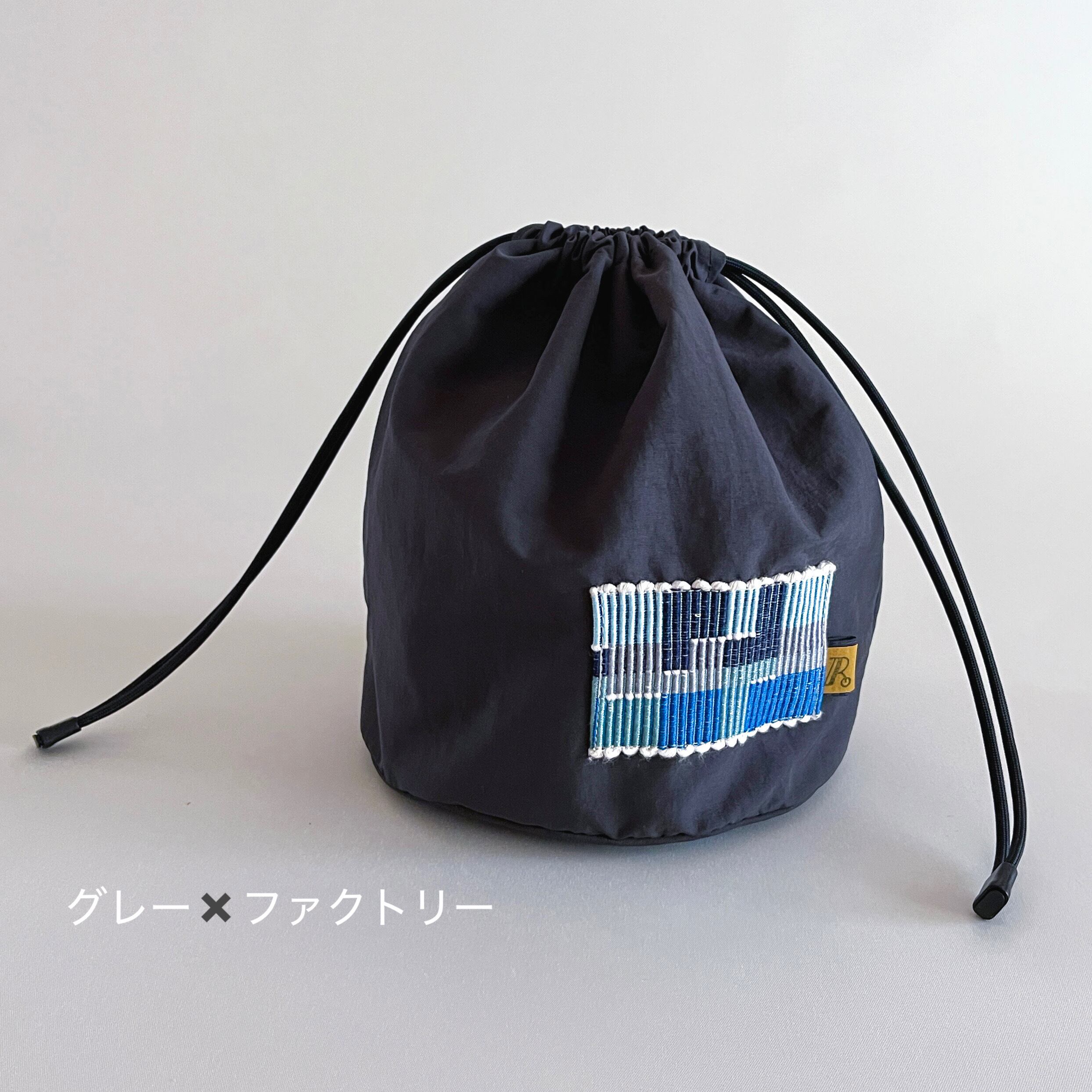 撥水巾着『コロン』ネイビー&グレー